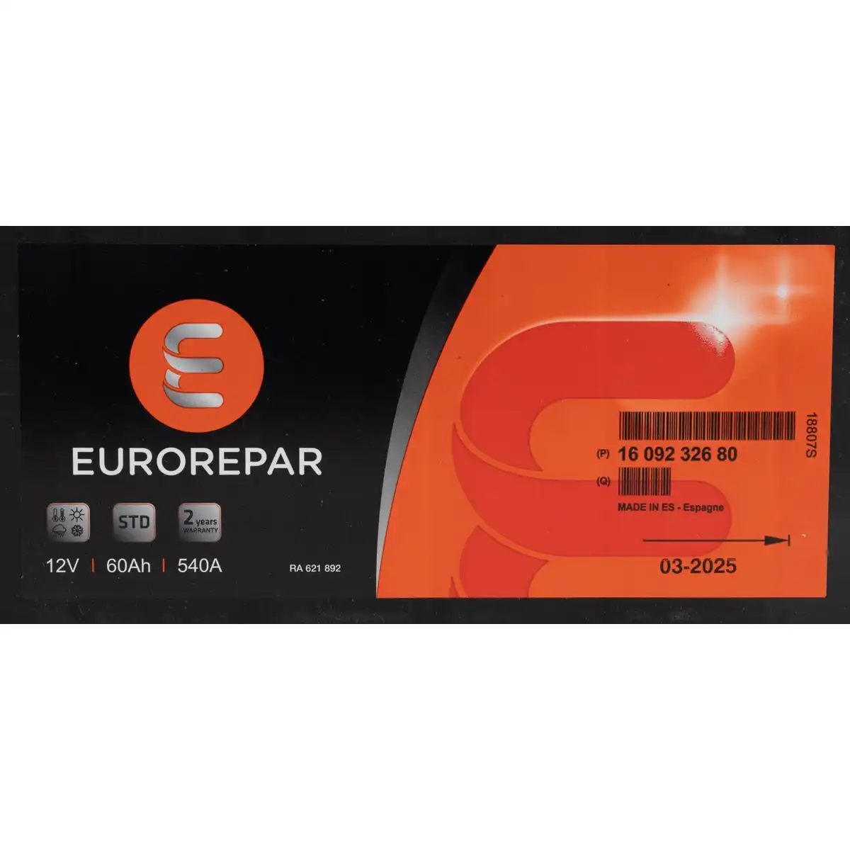 EUROREPAR STD Batterie Autobatterie Starterbatterie 12V 60Ah 540A/EN 1609232680