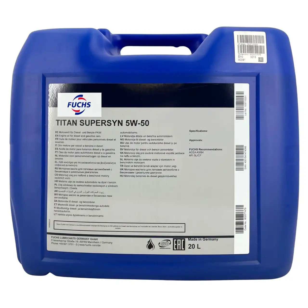 Produktinformationen "Fuchs Titan Supersyn 5W-50 20 Liter"