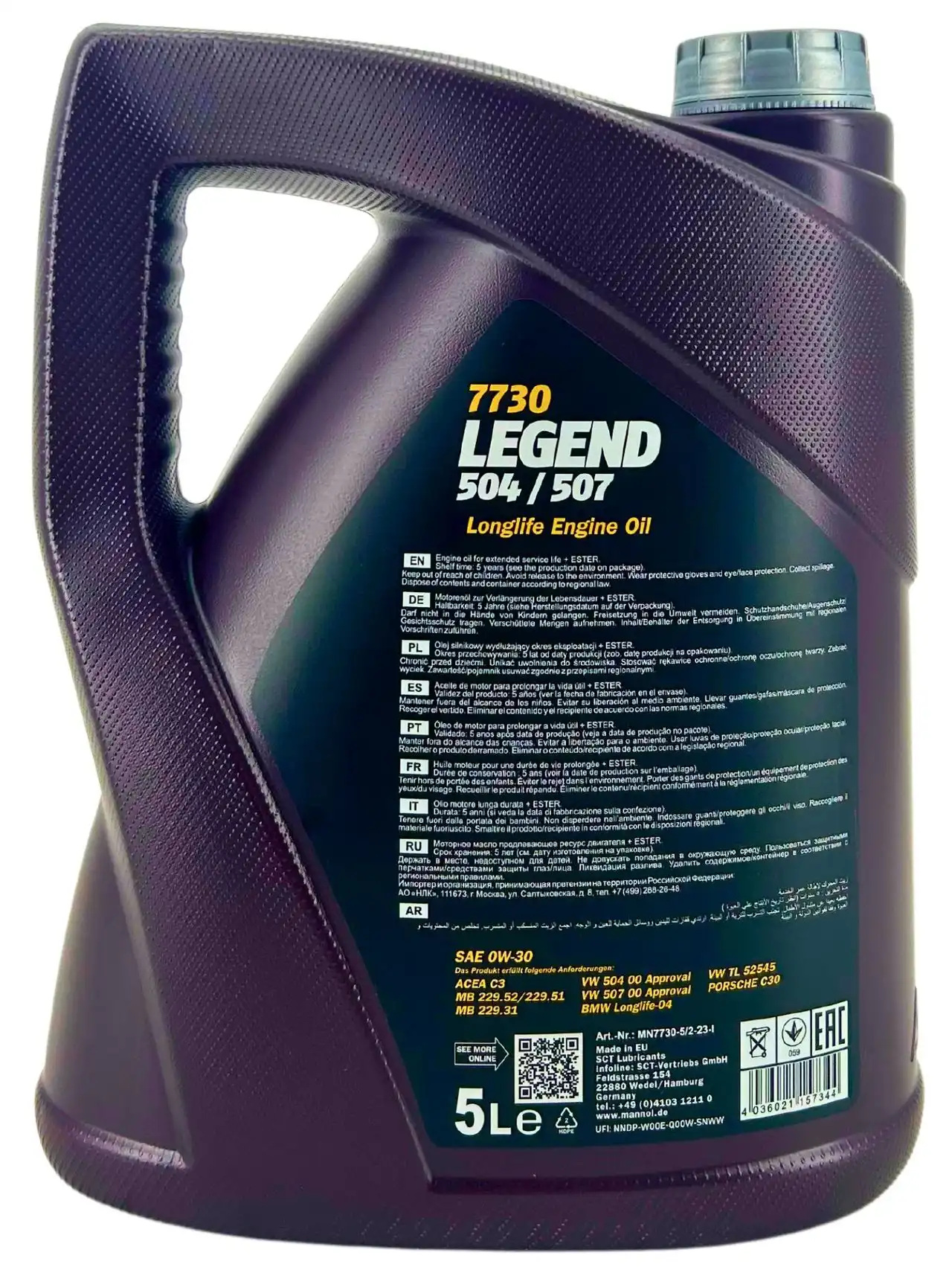 Homologation: BMW Longlife-04, Mercedes MB 229.31, Mercedes MB 229.51, Mercedes MB 229.52, Porsche C30, VW 504 00, VW 507 00, VW TL 52545